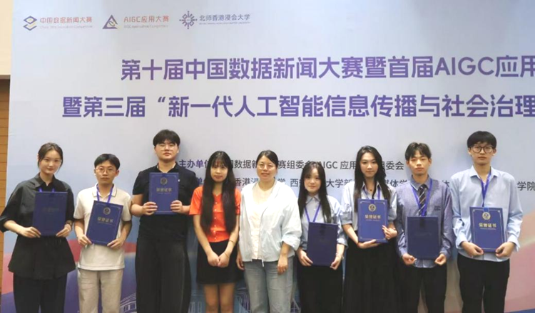 11 月 8 日,第十届中国数据新闻大赛暨首届 AIGC 应用大赛全国总决赛在珠海北师香港浸会大学举行。传媒学院参赛作品《从断裂的大地开始:中国对缅甸的168小时》和《纸上春秋》双双斩获全国二等奖,指导老师江娟、刘丹、孙海龙获得优秀指导教师称号。