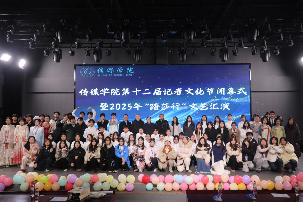意境悠远的歌曲《水流众生》、舞姿曼妙的舞蹈《whiplash》、幽默风趣的小品《今日反诈》……12月26日,传媒学院第十二届记者文化节闭幕式暨2025年“踏莎行”文艺汇演在演播厅举办。学院党委书记詹德全、执行院长王业明、党委副书记李元、副院长文继奎、邵敏和部分教师出席,100余名学生观看了演出。