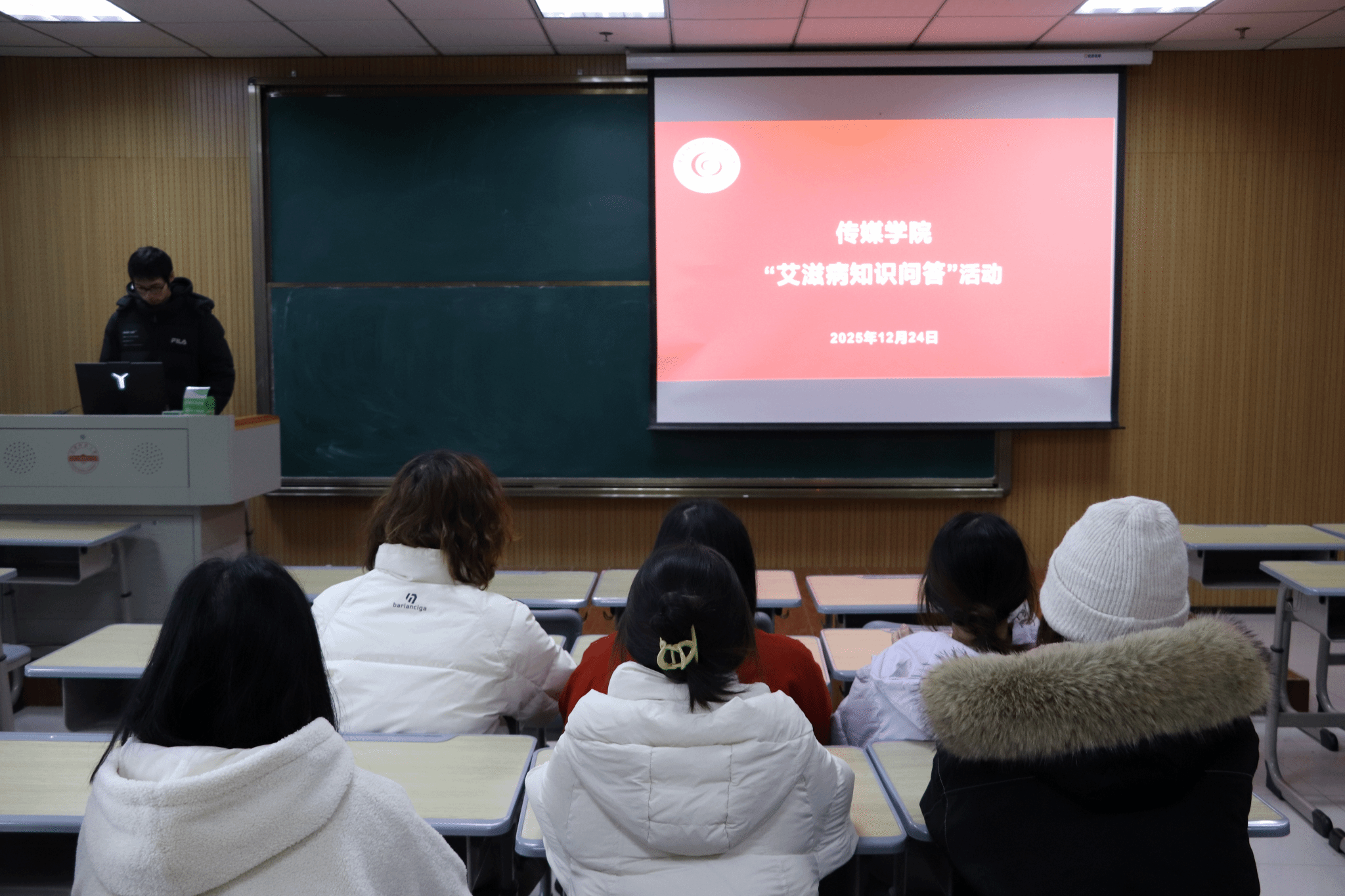 12月24日,传媒学院在k427教室举办了世界艾滋病宣传日活动。活动设有“艾滋病知识问答”环节,以趣味形式吸引了一批学生参与,增强了大家的体验感。