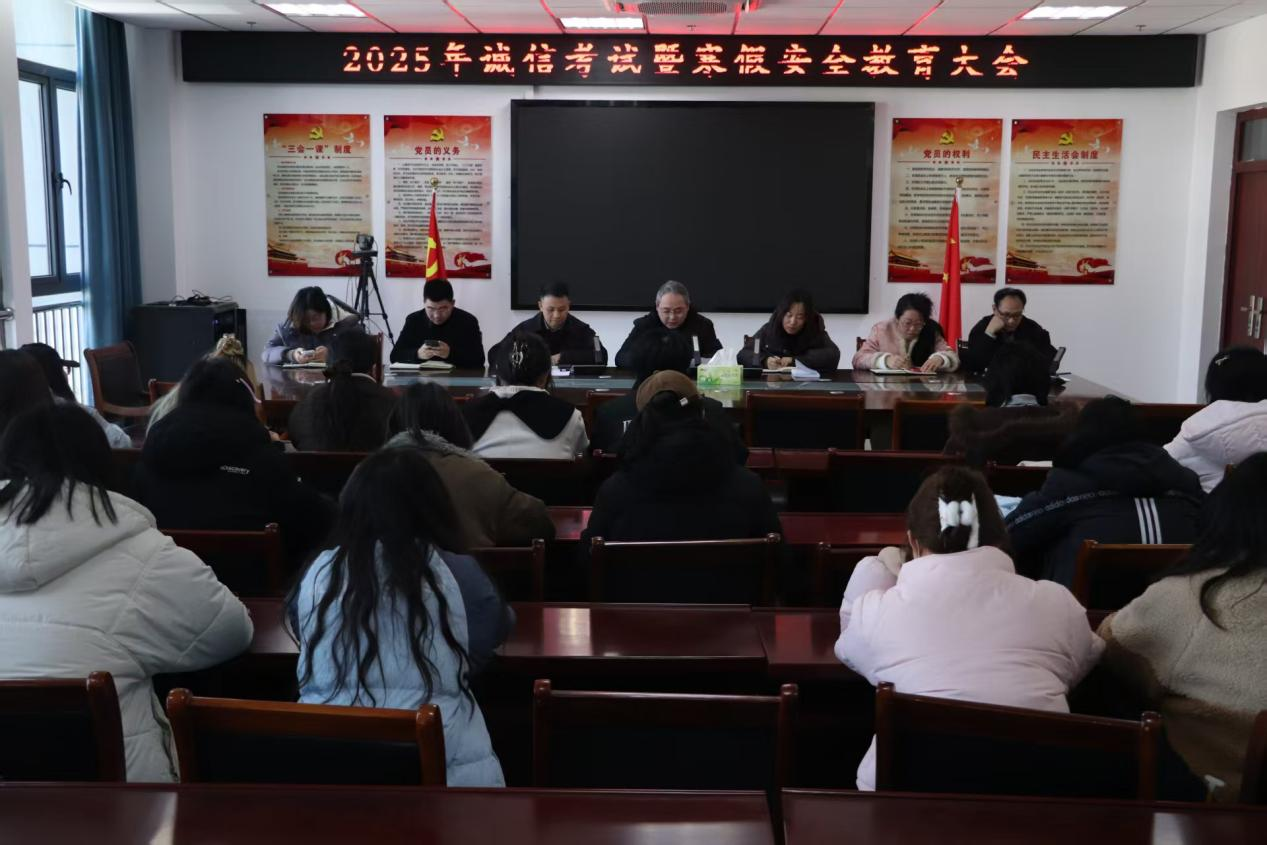 会上,李元就诚信考试对与会学生提出了四点要求。一是深刻认识诚信考试的重要性。诚信是中华民族的传统美德,诚信考试是对老师辛勤付出的尊重、对本人的负责,也是维护学院良好学风和考风的关键。二是严格遵守诚信考试纪律底线。学院一直以来对考试作弊行为采取“零容忍”的态度,违规违纪必究并承担严重后果。三是合理安排复习时间,科学高效备考。希望同学们合理规划时间,制定有效复习计划,注意劳逸结合。四是发挥模范带头作用,共同营造优良考风。学生骨干要以身作则,带头遵守考试纪律,主动帮助学习有困难同学,切实维护良好的考试秩序。李元还结合严守交通安全、消防安全防线、电信诈骗等假期安全工作进行了强调。