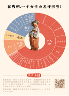 运用统计数据(如平均出嫁年龄17.6岁、育龄死亡率45%)量化唐代女性生存困境,增强说服力。用唐朝女性独属的“花钿”意象比喻女性生平,将抽象数据转化为具象化的视觉符号,降低理解门槛,让读者一下子就能看到唐朝女性的生平轨迹,并且在可视化唐朝女性惯常单一的生平轨迹同时结合特殊案例进行叙事分析,如墓志《蒋烈女碑》评价蒋氏“气英而豪”,为一时之杰、选择改嫁的女性、唐代宗时期的陇西李氏、晚唐时期的支志坚出身世家等等案例,吸引读者阅读兴趣。